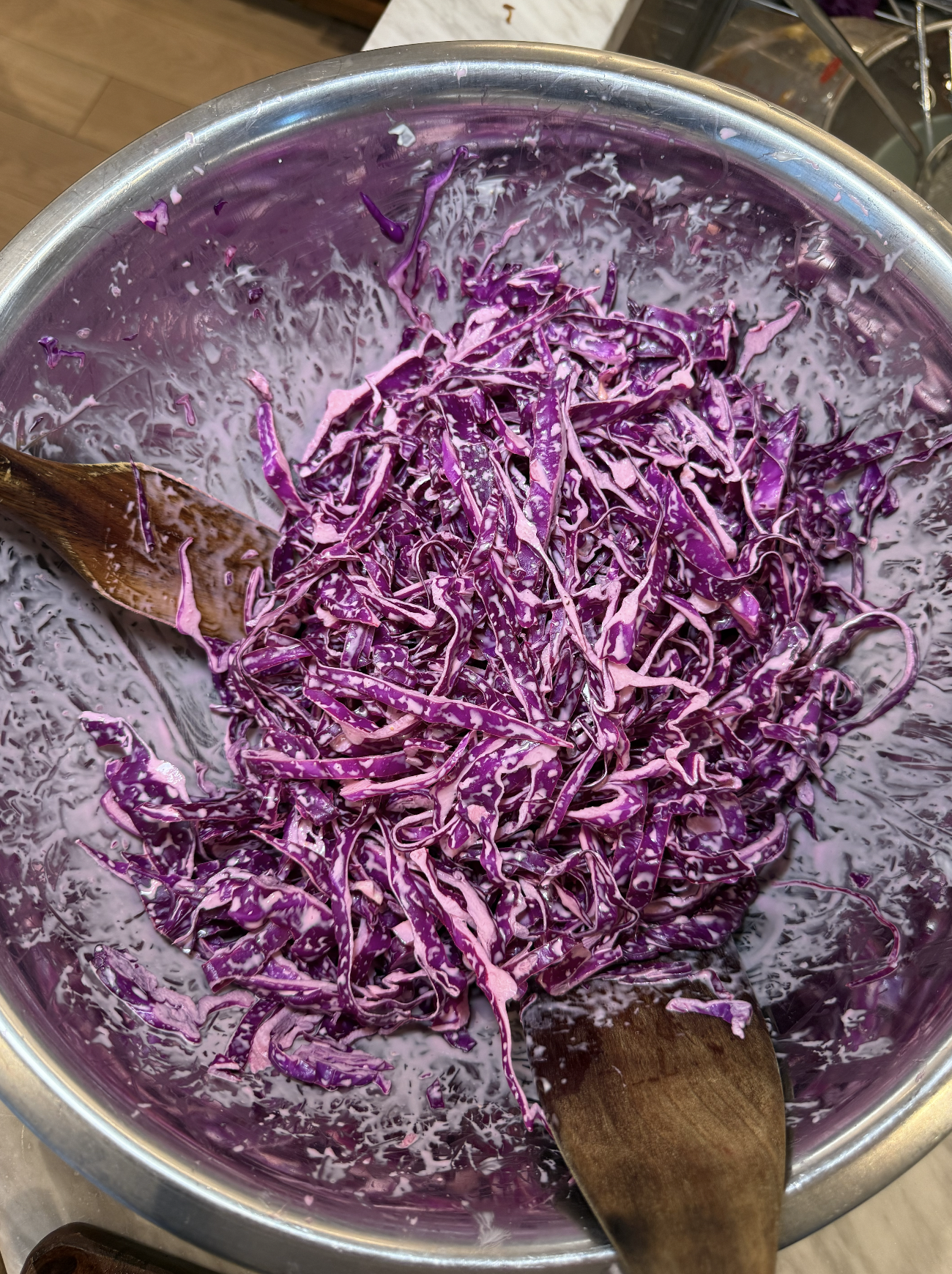 Crunchy cabbage salad. 🥬 This is a staple salad in our home. You can add so much to it and the longer it marinates in the fridge the better it gets! I’ll eat this as a side with scrambled eggs, or build into a bigger salad with protein and toppings. Lasts up to 7 days.